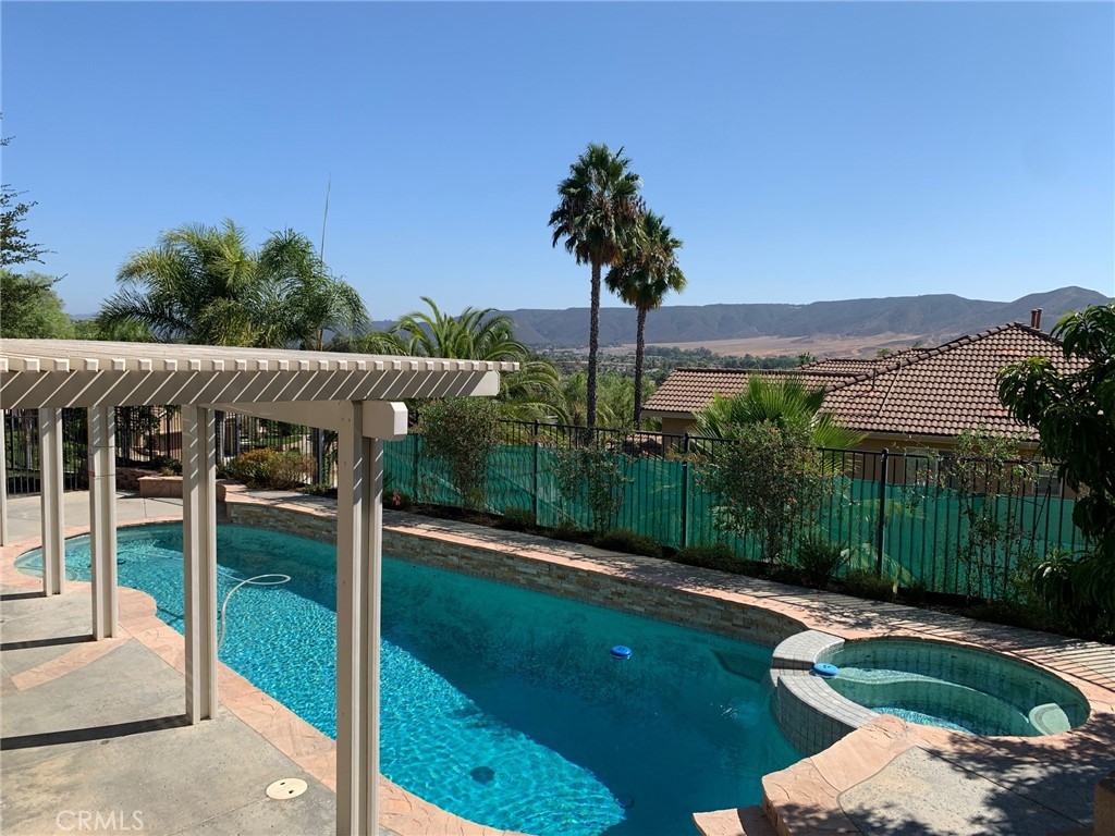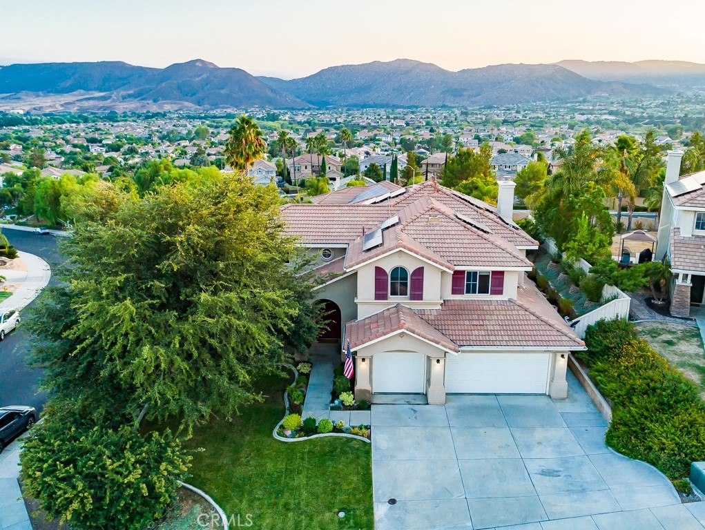 BACK ON THE MARKET!! Beautiful Grizzly Ridge Estate Pool Home with incredible Views of the Santa Rosa Plateau, Paid Solar (26 panels,) No Hoa! Located in Desirable West Murrieta with Award Winning Schools, this wonderful home is on a Cul De Sac and sits on a Large “Private Corner Lot” with Covered Front Porch, an Entrance Fountain, Lush Mature Landscaping, Multiple Fruit Trees and Terraced Gardens. Built in 2002 with 4 Large Bedrooms, Den/possible 5th Bedroom, 3 Full Bathrooms, Vaulted Ceilings, Formal Living and Dining Room, Brazilian Cherrywood Flooring, Upgraded Carpet, Custom Paint, Upgraded lighting and Ceiling Fans. The Spacious “Remodeled” Eat in Kitchen has a Large Center Island, Custom Granite & Back splash, Under Cabinet Lighting, Stainless Steel “Bosch” Appliances, Double Ovens and is open to the Cozy Family Room with Custom “Built Ins”, Granite Fire Place and is wired for Surround Sound. Downstairs is a Very Large Den (possibly 5th Bedroom), Full Bathroom and Oversized Laundry room. Upstairs you will find a Beautiful Master Bedrooms with Sweeping Mountain Views and Large Walk in Closet! The Luxurious “Spa Like” Master Bathroom was Recently Remodeled to include a Huge Walk in Shower with Beautiful Pebble Tile, Upgraded fixtures and Custom glass. The Double Vanity has very Unique Custom Stone Counters and Upgraded Fixtures, Mirrors and Lighting. The 3 Guest Bedrooms are spacious with Upgraded Ceiling Fans. The upstairs landing is large enough to accommodate a desk and it has extra storage cabinets. The Back Yard is Perfect for entertaining with its Tropical Pool/Spa, Mountain Views, Alum wood Patio Cover, Grass Area for Kids and Pets, Terraced Gardens and Fruit Trees. The pool was recently retiled in 2020 and all the pool equipment was replaced in 2019. Other Upgrades include 200V/50 Amp RV Outlet, Window Tint, ADA Door Handles, Rain Gutters, Yard Drains that go out to the street, Extra wall insulation between bedrooms (for noise reduction), Whole house fan, and Metal Storage Racks and Shelves in the Garage. This home is walking distance to Grizzly Ridge Park, Close to Schools, Shopping, Hospitals and the 15 Freeway for easy commute. This home has it all!