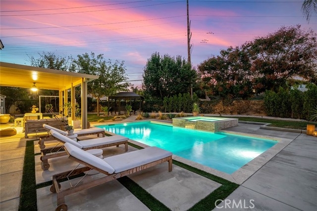 Highly upgraded pool home is priced to sell! This stunning home has been thoroughly updated inside and out and features a massive backyard with a brand-new sparkling pool and spa! And inside the home is pure eye candy, boasting new Quartz countertops throughout, luxury vinyl plank flooring, stainless steel appliances, sink fixtures, hardware, custom lighting, newer windows, paint, A/C unit, whole house fan, and more! The modernized kitchen hits all the marks, with farm sink, gorgeous warm hue Quartz countertops, and designer touches such as the chevron backsplash and soft- bronze finished hardware. From there, the kitchen connects seamlessly to the breakfast area and family room with wood-burning fireplace, creating a cozy, but open main living space. Across the hall is an updated bathroom, a bedroom, a larger formal dining area, and a light-filled, open living room, all illuminated by custom, updated light fixtures that add to the ambiance throughout. Head up the impressive staircase to a spacious loft/bonus room, perfect for a kids’ playroom, media room, or easily converted fifth bedroom. The primary bedroom offers extra flex-space and built-in storage, suitable for a home office, gym, or media room. The primary bathroom features a large soaking tub, a separate shower, and a large walk-in closet. There are two more bedrooms and a bathroom upstairs, all tastefully updated. The backyard is a dream come true where you’ll get to enjoy the SoCal sun in your new pool and spa with top-of-the-line ozone filtering, a large Alumawood-covered patio for lounging and dining under the shade, a large and super useful Tuff Shed, custom outdoor lighting, water-efficient landscaping, and, to top it off, no rear neighbors, culminating in the perfect outdoor living space! The oversized three-car garage includes built-in storage, epoxy-coated floors, and a soft-water system. Come live your best life and enjoy low taxes and no HOA, just a short drive to Historic Old Town Murrieta, top schools like Cole Canyon Elementary, excellent restaurants, hospitals, and shopping. All of this is set against the natural backdrop of the Murrieta foothills and Santa Rosa Plateau Ecological Reserve, while conveniently located near the 15 Freeway and the famous Temecula Wine Country.