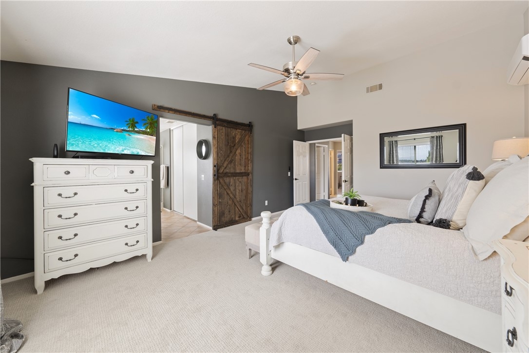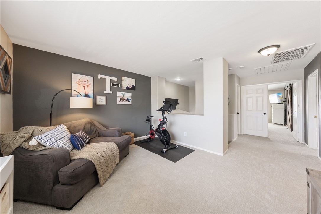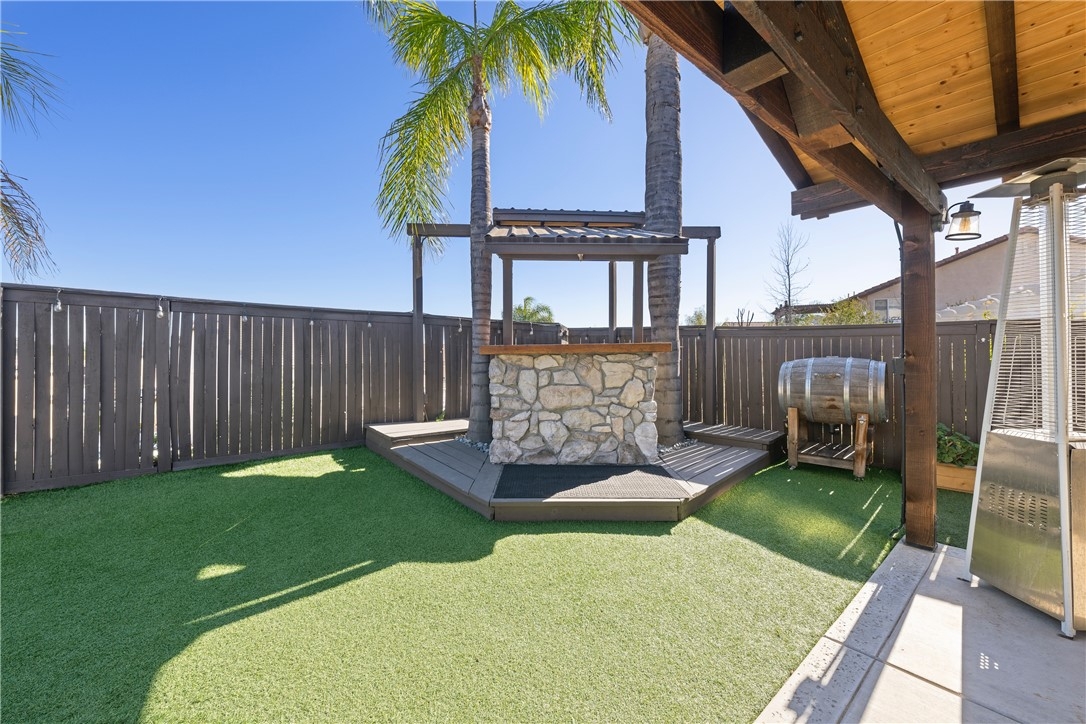 Welcome home to 23517 Mountain Breeze Drive! This absolutely gorgeous 4 bedroom, 3 bath Grizzly Ridge home offers everything you've been looking for! From the moment you pull up, the curb appeal, front porch swing, expansive front lawn and oversized driveway will catch your eye. As you enter the home, you will immediately notice the openness of the vaulted ceilings and an abundance of natural light. Gorgeous LVP flooring will guide you through the entire lower level which features a downstairs bedroom (currently being used as an office) and a full bathroom with a custom tile step in shower and updated vanity. Make your way into the family room which is appointed with a stack stone gas fireplace, recessed lighting throughout and stunning views of the entertainers backyard. Off the family room is the dining space and open concept kitchen, complete with Corian countertops, white cabinetry, tile backsplash and stainless steel appliances. Adjacent to the kitchen is the jack and jill Laundry Room with has been updated with a custom wood folding table, gorgeous black hexagon tile flooring and generous storage space. Exit through the custom made barn door into the hall which offers direct access to the 3 car garage, a hall closet with ample storage space and a walk in pantry. Step out through the French doors to your entertainers' backyard which offers a custom wood A Frame patio cover with updated lighting, built in bar, gorgeous palm trees and a completely remodeled mini pebble Salt water Pool and Spa with variable speed pump, LED lights and Pentair WIFI enabled Intellicenter control system. Upstairs you will be met with a generous sized loft, 2 additional bedrooms, full shared bath and the Primary Suite and bathroom, complete with his and her sinks, soaking tub, step in shower and a large walk in closet. Not to be overlooked, the 3 car garage has been recently updated with Epoxy flooring, custom cabinetry, a shiplap wall and built in storage racks. The side yard lends to the generous 40' deep RV Parking which is equipped with 30 AMP service and a custom gate. Located within the award winning Murrieta Valley School District and a short drive to Temecula Valley Wine Country, this home does not disappoint. Don't miss your opportunity to tour Mountain Breeze today!