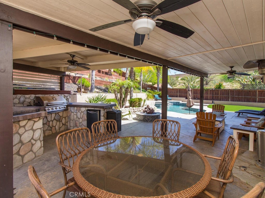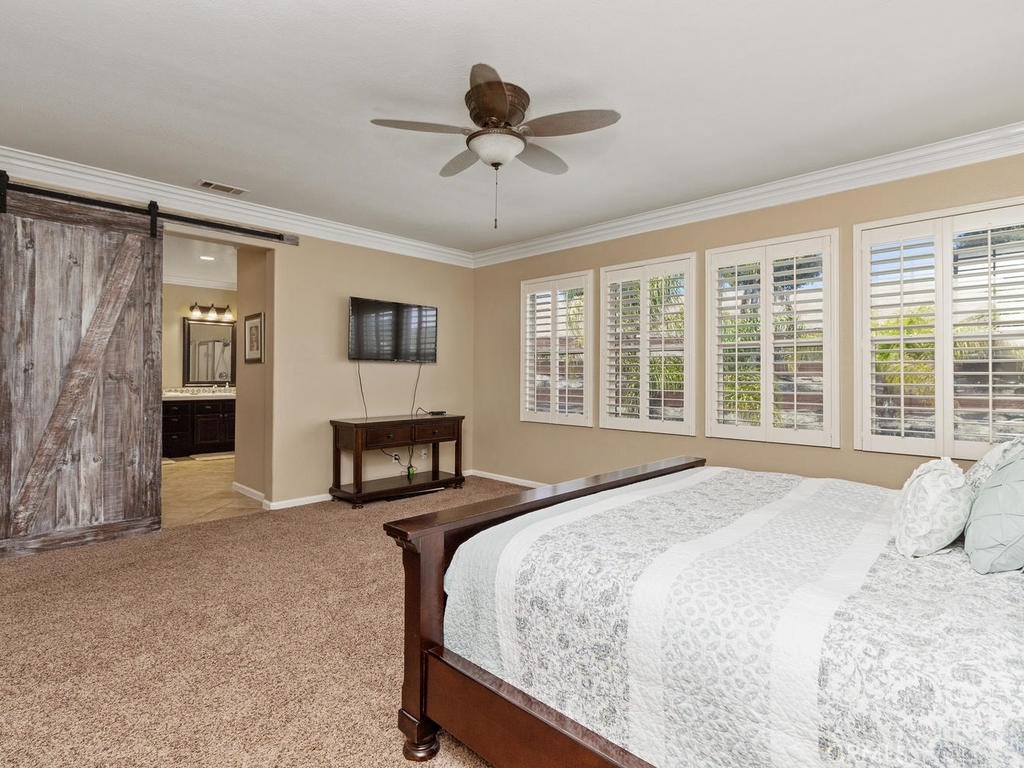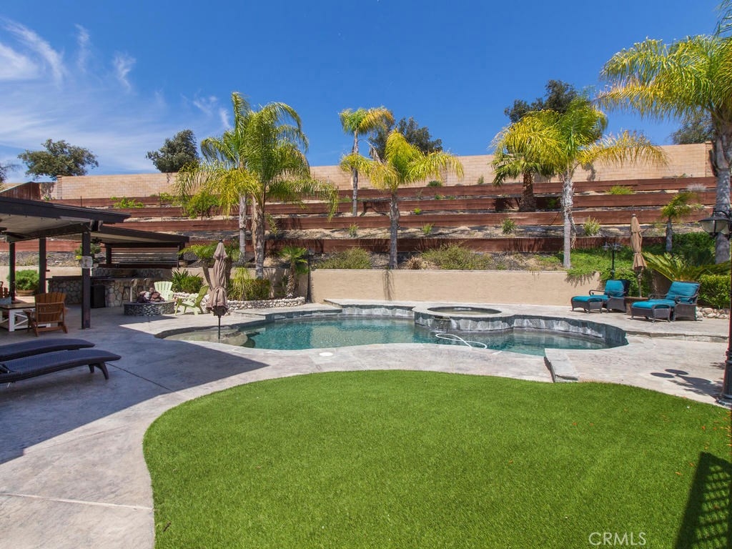 Live like you’re on vacation in this private oasis with a place for everyone and a space for everything! This home features a full bedroom & bath suite downstairs along with a separate office downstairs- 4 additional large bedrooms upstairs including a luxurious master suite with a dual walk in closet, walk in shower and soaking tub. The kitchen is amazing with granite counters, kitchen island and an abundance of cabinets. The floor plan is open with ample windows. The courtyard entry is elevated with a mountain view and the backyard is an absolute private paradise with refreshing pool & spa, outdoor kitchen & living spaces that are covered, artificial turf, raised bed gardening and storage shed. Solar System in place will save you thousands every year! Many upgrades have gone into this home that you must see in person to appreciate...built in entry benches, reclaimed wood wall features, sliding barn door to master bath, shutters, ceiling fans, built in bar, etc!