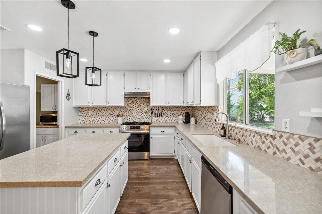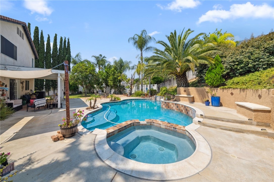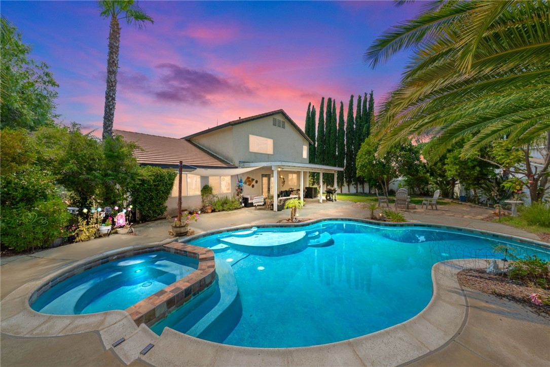 Welcome home to 41963 Cameryn Court! Nestled in the serene and highly sought-after neighborhood of Grizzly Ridge in West Murrieta, this lovely property offers the perfect blend of modern updates and timeless charm. Situated on a generous .25 acre lot in a quiet cul-de-sac, this home is an oasis of tranquility and luxury. This beautiful home boasts 4 bedrooms and 3 bathrooms, providing ample space for your family and guests. The open floor plan and abundant natural light create a warm and inviting atmosphere. Recently updated with the latest in modern design, this home features sleek LVP flooring throughout the lower level, contemporary fixtures, and an updated kitchen equipped with stainless steel appliances, quartz countertops, tile backsplash and a large center island perfect for entertaining. The luxurious master suite is a private retreat, complete with a spa-like en-suite bathroom featuring modern designed title flooring, a soaking tub, separate shower, and dual vanities. The walk-in closet provides plenty of storage space. As you step outside to your own private paradise, you'll be greeted by the expansive backyard featuring a sparkling pool and spa, perfect for cooling off on hot summer days. The landscaped yard offers plenty of space for outdoor activities, gardening, and relaxation. Located in the highly desirable West Murrieta area, this home is close to top-rated schools (Cole Canyon Elementary boundaries), parks, shopping, and dining. Enjoy the peaceful cul-de-sac setting while still being conveniently close to all the amenities you need. Don't miss this rare opportunity to own a beautifully updated home in one of West Murrieta's most desirable neighborhoods. Schedule a viewing today and experience the perfect blend of luxury, comfort, and convenience!
